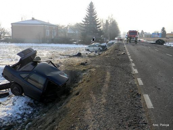 Do wypadku doszło tuż przed 8:30 w Turowie na K-19. Jak wstępnie ustalili policjanci 27 letni mężczyzna kierując samochodem Opel skręcał w drogę na swoją posesję, natomiast jadący za nim samochodem Renault 24 letni mieszkaniec gm. Kąkolewnica podjął manewr wyprzedzania i doszło do zderzenia pojazdów. Siła uderzenia była tak duża, że samochody rozpadły się na części. Kierowcy z obu pojazdów zostali przewiezieni do szpitala. Droga K – 19 jest zablokowana, policjanci wyznaczyli objazdy i ustalają okoliczności tego zdarzenia.