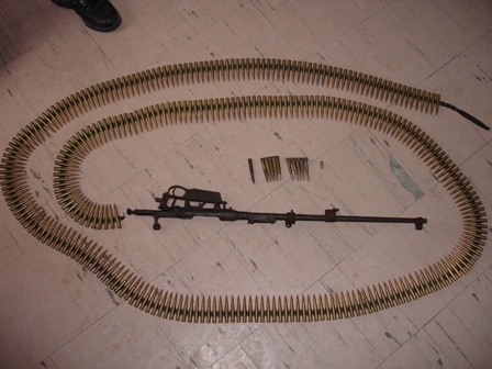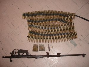 Informacja kryminalnych potwierdziła się. Podczas przeszukania posesji, w budynku gospodarczym policjanci ujawnili szkielet karabinu typu „Mainicher M-35” oraz ponad 300 sztuk amunicji karabinowych. Amunicja wmontowana był a w taśmę. Policjanci zabezpieczyli także pocisk do pistoletu. Ujawnione przedmioty zostały zabezpieczone.