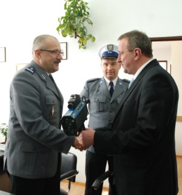 Nowoczesny, laserowy miernik prędkości otrzymali z rąk Burmistrza Miasta Międzyrzec Podlaski policjanci Komisariatu Policji w Międzyrzecu. Sprzęt, który faktycznie już od kilku tygodni jest wykorzystywany przez policjantów ruchu drogowego, został oficjalnie przekazany wczoraj w obecności Komendanta Miejskiego Policji w Białej Podlaskiej.