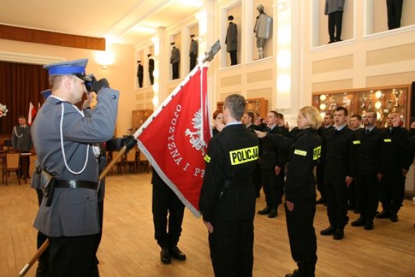 Komendant Parfieniuk wręczył policjantom odznaki i legitymacje oraz pogratulował im wyboru tej drogi zawodowej, podkreślając jednocześnie szczególny charakter służby.