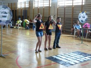 Na zakończenie konkursu każda drużyna otrzymała dyplom dla szkoły a każdy uczestnik nagrodę rzeczową, elementy odblaskowe oraz książki o bezpieczeństwie.