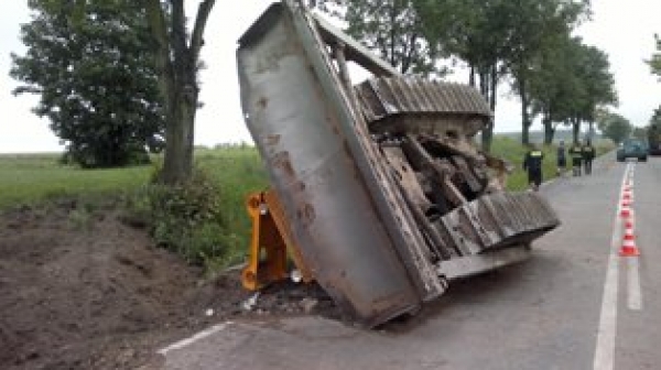 Jak ustalili pracujący na miejscu policjanci, spychacz spadł z naczepy ponieważ był nieprawidłowo zabezpieczony. Przewożący sprzęt, 34 – latek został ukarany 400 – sto złotowym mandatem karnym.