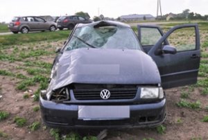 Do zdarzenia doszło wczoraj po południu w miejscowości Kamień Kolonia. Policjanci patrolujący rejon tej miejscowości, zwrócili uwagę na mężczyznę, który wsiadł do samochodu marki VW Polo. Jego zachowanie wskazywało na to, że mógł on znajdować się pod działaniem alkoholu. Postanowili zatrzymać pojazd do kontroli drogowej. Kiedy zbliżali się do samochodu kierowca nie zważając na dawane do zatrzymania sygnały gwałtownie odjechał. Policjanci ruszyli za oddalającym się z dużą prędkością pojazdem. Po przejechaniu niespełna 2 kilometrów, kierujący volkswagenem stracił panowanie nad autem, wjechał do przydrożnego rowu i kilkakrotnie dachował.