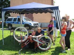 Podczas sobotniego festynu policjanci w kontekście zbliżających się wakacji przypominali uczestnikom o zasadach bezpiecznego wypoczynku, a rozdawane kolorowanki miały za zadanie utrwalić znajomość numerów alarmowych. Dzieci odgadywały także zagadki o tematyce prewencyjnej, a prawidłowe odpowiedzi najmłodszych mundurowi goście nagradzali niebieskimi balonikami.