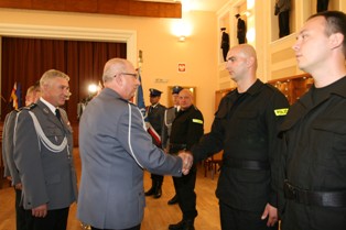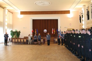 Komendant Parfieniuk wręczył policjantom odznaki i legitymacje oraz pogratulował im wyboru tej drogi zawodowej, podkreślając jednocześnie szczególny charakter służby.