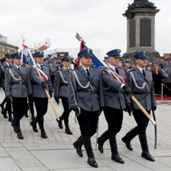 Około godziny 13.15 obchody przeniosą się na Plac Zamkowy. Wszystkich przybyłych na uroczystość powita Komendant Główny Policji nadinsp. Marek Działoszyński, który złoży meldunek Prezesowi Rady Ministrów Donaldowi Tuskowi. Na Placu Zamkowym odbędzie się również promocja absolwentów Wyższej Szkoły Policji w Szczytnie, ślubowanie nowoprzyjętych stołecznych funkcjonariuszy, zaś laureatom konkursu „Policjant, który mi pomógł” zostaną wręczone wyróżnienia. Wszyscy biorący udział w obchodach będą mieli okazję obejrzeć z bliska policyjny sprzęt, porozmawiać z funkcjonariuszami i ponownie wysłuchać koncertu orkiestr policyjnych. Uroczysta defilada pododdziałów Policji i promowanych zakończy tego dnia obchody policyjnego święta.