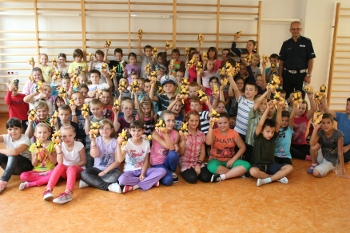 Dzisiaj policjanci z Wydziału Ruchu Drogowego KWP w Lublinie spotkali się dziećmi klas III ze Szkoły Podstawowej nr 44 w Lublinie. Tematem spotkania było bezpieczeństwo w ruchu drogowym. Dzieci słuchały i zadawały pytania. Doskonale znały również odpowiedzi dotyczące podstawowych zasad bezpieczeństwa na drodze. Na koniec spotkania wszyscy mali uczniowie otrzymali maskotki Pancernika Gustawa. Sympatyczny pluszak ma przypominać dzieciom o zasadach bezpiecznego podróżowania w pasach oraz w fotelikach bezpieczeństwa.