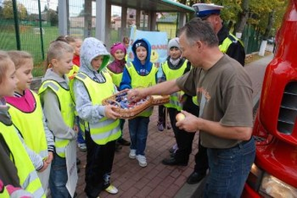 Dziś rano dzieci ze Szkoły w Gościeradowie wraz z policjantami uczestniczyły w kontroli drogowej. To akcja kraśnickiej Policji przy wsparciu Urzędu Gminy w Gościeradowie oraz uczniów z Zespołu Szkół w Gościeradowie. Dzieci zostały wcześniej przygotowane do tego zadania. Do specjalnych koszyków trafiły słodycze i kwaśne cytryny. Pod hasłami Za przestrzeganie słodkie podziękowanie oraz Za przekroczenie kwaśne upomnienie rozpoczęła się kontrola drogowa.