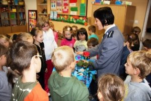 Przypominali, że dziecko w wieku do 15 lat, poruszające się po drodze po zmierzchu poza obszarem zabudowanym, jest obowiązane używać elementów odblaskowych. Ponadto dzieci dowiedziały się gdzie wolno a gdzie nie wolno się bawić, jak należy postępować z obcymi i jak uchronić się przed atakiem psa. Chętnie zaprezentowały postawę żółwia chroniąca przed atakiem niebezpiecznego czworonoga. Przypomniano również dzieciom w jaki sposób się zachować gdy zaczepi nas obca osoba.
