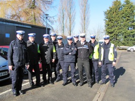 Następnie policjanci udali się do siedziby jednostki ruchu drogowego oraz uzbrojonej formacji Policji, gdzie zaprezentowano środki transportu wykorzystywane przez policjantów w Wielkiej Brytanii m.in.: BMW 530, Audi A4, Volvo V80, Range Rover oraz motocykle służbowe marki BMW. Przedstawiono również wyposażenie oraz omówiono taktykę działania uzbrojonej formacji Policji.