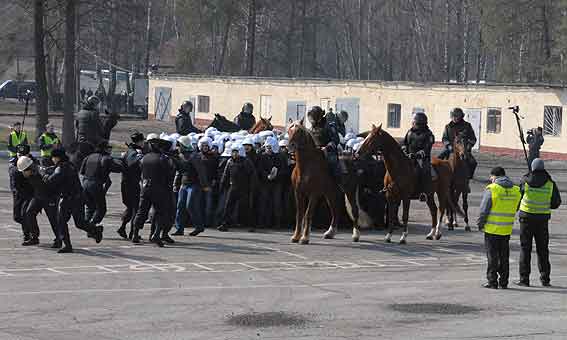 Natomiast w Kijowie na stadionie NSK „Olimpijski” delegacja miała okazję zobaczyć od strony praktycznej ćwiczenia dowódczo-sztabowe w których uczestniczyli również przedstawiciele kierownictwa MSW Ukrainy, Służby Bezpieczeństwa Ukrainy i Ministerstwa Spraw Nadzwyczajnych, jak też przedstawiciele władz miasta. Delegacja zwiedziała międzynarodowy port lotniczy „Borysopol. Na zakończenie warsztatów delegacja uczestniczyła w zajęciach szkoleniowych w Akademii Spraw Wewnętrznych Ukrainy w Kijowie.