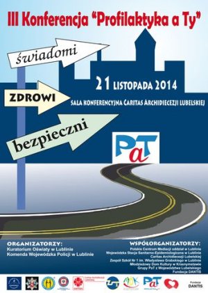 Już jutro w ramach I Festiwalu Społeczności PaT na Lubelszczyźnie odbędzie się III Konferencja Profilaktyka a Ty "Jestem świadomy, zdrowy i bezpieczny", której organizatorami są Komenda Wojewódzka Policji w Lublinie oraz Kuratorium Oświaty w Lublinie. Na konferencji zostaną poruszone tematy bezpieczeństwa w szkole, innowacji w profilaktyce uzależnień, zaburzeń zdrowego odżywiania oraz mediacji i jej wykorzystania w pracy z młodzieżą.