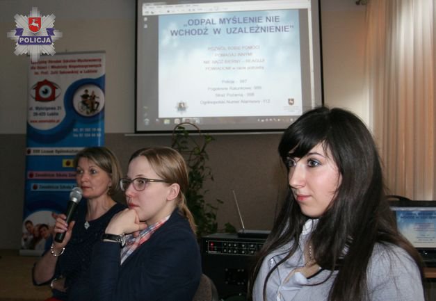 „Odpal myślenie nie wchodź w uzależnienie” to nazwa programu profilaktycznego, który organizuje Wydział Prewencji KMP w Lublinie. Wczoraj w Specjalnym Ośrodek Szkolno – Wychowawczym dla Dzieci i Młodzieży Niepełnosprawnych w Lublinie odbyła się inauguracja drugiej edycji tego przedsięwzięcia. Jego celem jest zwiększenie świadomości wśród młodych ludzi w zakresie zagrożeń związanych z zażywaniem dopalaczy. Odbiorcami projektu jest młodzież szkół gimnazjalnych i ponadgimnazjalnych, ich rodzice oraz nauczyciele. Projekt realizowany jest przy wsparciu finansowym Regionalnego Ośrodka Polityki Społecznej w Lublinie.