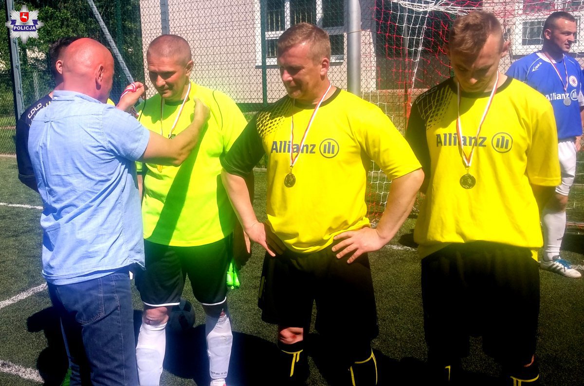 Policjanci z Oddziału Prewencji Policji w Lublinie i Komendy Miejskiej Policji w Lublinie bardzo aktywnie przyłączyli się do tego przedsięwzięcia i brali udział w każdym z czterech turniejów. Zawody kończące serię odbyły się w minioną sobotę tj. 3 czerwca, na których drużyna z OPP spisała się wyśmienicie wygrywając IV Turniej. Niesamowitym wzmocnieniem tej drużyny okazała się towarzysząca tacie 12-letnia Emilka, córka sierż. szt. Adama Świderskiego. Emilka wspierała mundurowych na boisku strzelając jedną bramkę z gry, natomiast w meczu finałowym była bezbłędną egzekutorką rzutu karnego i to właśnie ona strzeliła ostatniego karnego, który dał drużynie z oddziału prewencji zwycięstwo! Dzięki wygranej w IV Turnieju drużyna OPP w Lublinie zwyciężyła również w klasyfikacji ogólnej całej serii turniejów.