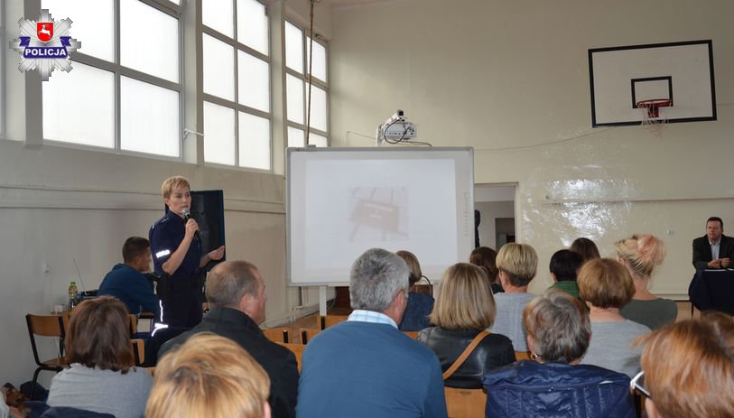 Ośmieszanie i poniżanie w sieci, bezprawne użycie czyjegoś wizerunku, tworzenie fałszywych profili, stalking, groźby przy użyciu telefonów komórkowych, czy internetu– te i inne zagadnienia związane z cyberprzestępczością oraz odpowiedzialnością za popełnienie czynów niezgodnych z obowiązującym prawem przekazała policjantka przybyłym rodzicom i opiekunom. W dostępny sposób zwróciła uwagę na sytuacje przemocowe, do których może dochodzić przy użyciu technologii informacyjnych i komunikacyjnych. Wskazała też, aby rodzice rozmawiali ze swoimi dziećmi i również przestrzegali przed nieprzemyślanymi i ryzykownymi zachowaniami, których konsekwencje mogą zaważyć na ich przyszłości.