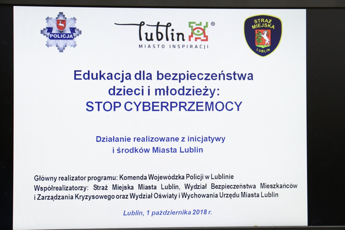 Edukacja dla bezpieczeństwa dzieci i młodzieży: "STOP CYBERPRZEMOCY” to nazwa programu, którego inauguracja ruszyła dziś w Lublinie. Adresatami tego programu są uczniowie klas III i VII szkół podstawowych, zaś jego celem jest zwrócenie uwagi na zasady bezpiecznego zachowania podczas korzystania z komunikatorów elektronicznych oraz serwisów społecznościowych oraz nabycie umiejętności właściwego reagowania w przypadku zagrożenia cyberprzemocą. Głównym realizatorem tego przedsięwzięcia jest Komenda Wojewódzka Policji w Lublinie