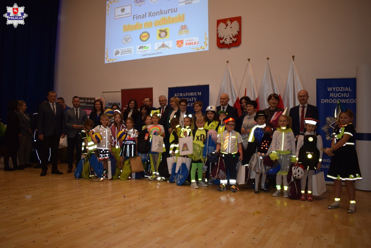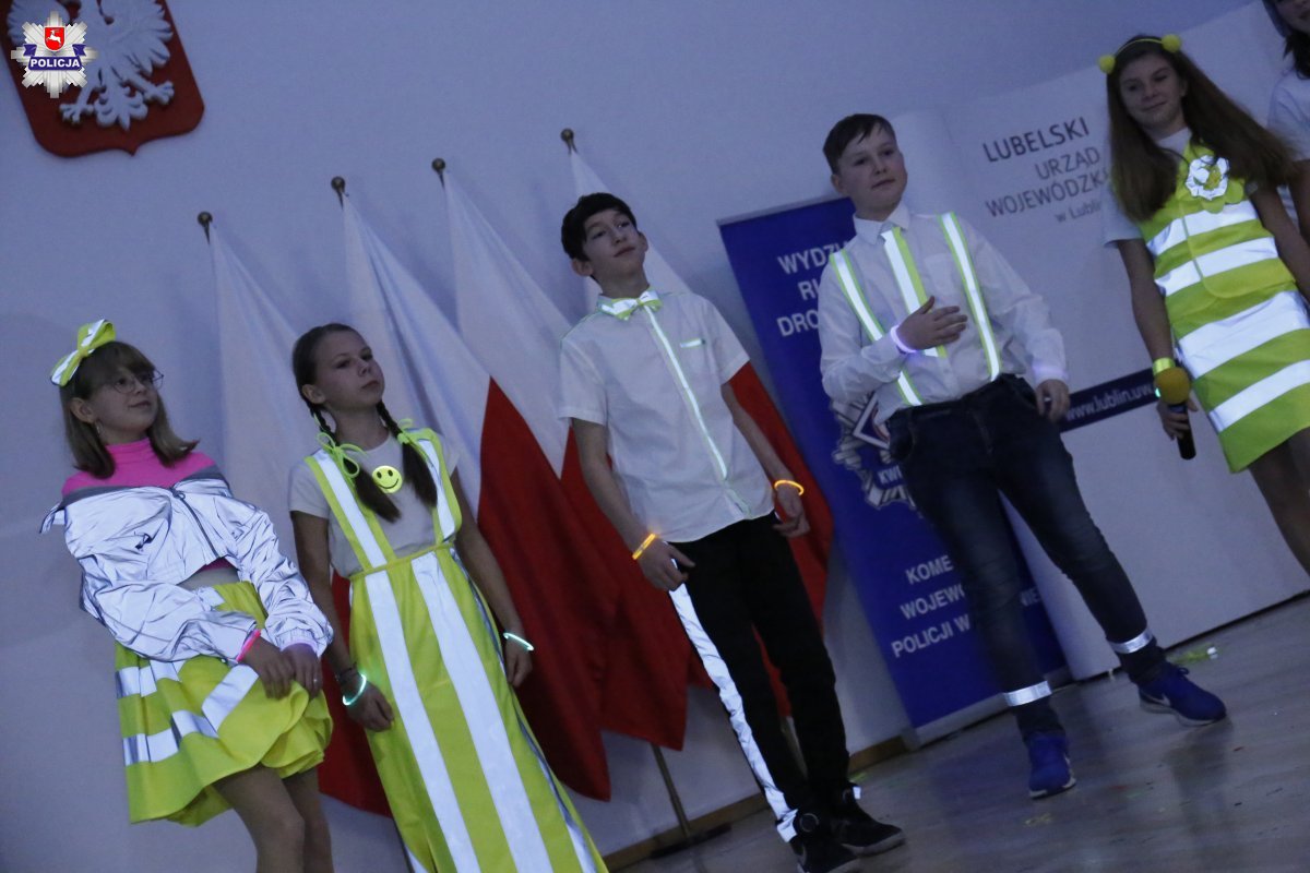 Finał konkursu ”Moda na odblaski” odbył się dziś w Lubelskim Urzędzie Wojewódzkim. 24 drużyny ze szkół podstawowych woj. lubelskiego prezentowały pokaz mody odblaskowej i wiersz zachęcający do przestrzegania przepisów. Celem zorganizowanego przez Wydział Ruchu Drogowego Komenda Wojewódzka Policji w Lublinie przedsięwzięcia było promowanie wśród uczniów podstawowych zasad bezpieczeństwa w ruchu drogowym. I miejsce zajęły: Szkoła Podstawowa w Stawie i Szkoła Podstawowa w Kostrach.