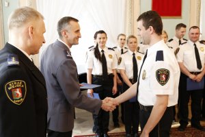 18 strażników miejskich dziś rano w Trybunale Koronnym na Starym Mieście w Lublinie otrzymało świadectwa ukończenia szkolenia podstawowego. Wręczył je Komendant Wojewódzki Policji w Lublinie insp. Robert Szewc. Kandydaci na strażników miejskich po odbyciu przeszkolenia teoretycznego i praktycznego, na terenie policyjnych obiektów przystąpili do egzaminu końcowego. Musieli wykazać się wiedzą ze znajomości przepisów i procedur oraz umiejętnościami z zakresu techniki i taktyki interwencji.