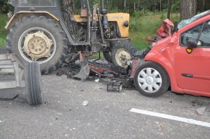 Łęczyńscy policjanci wyjaśniają okoliczności zdarzenia drogowego, do którego doszło w piątek po południu w Kolonii Świerszczów. Ze wstępnych ustaleń wynika, że 20–letni kierujący pojazdem marki Renault najechał na tył ciągnika rolniczego Ursus z przyczepą, którym kierował 58–latek. Obrażeń doznali podróżujący osobówką oraz kierowca ciągnika. Uczestnicy zdarzenia byli trzeźwi.