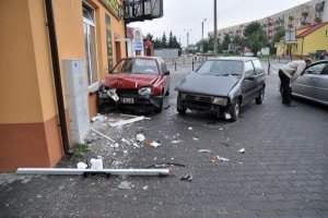 Wczoraj na skrzyżowaniu ulic Zabielskiej i Wyszyńskiego doszło do groźnie wyglądającej kolizji. Kierujący osobowym volkswagenem skręcając w lewo nie zapanował nad pojazdem, zjechał na chodnik, po czym "wjechał" w stojący tam budynek. Uszkodzeniu uległ nie tylko sam budynek ale również zaparkowany przed nim samochód. Policja ustala szczegóły zdarzenia.
